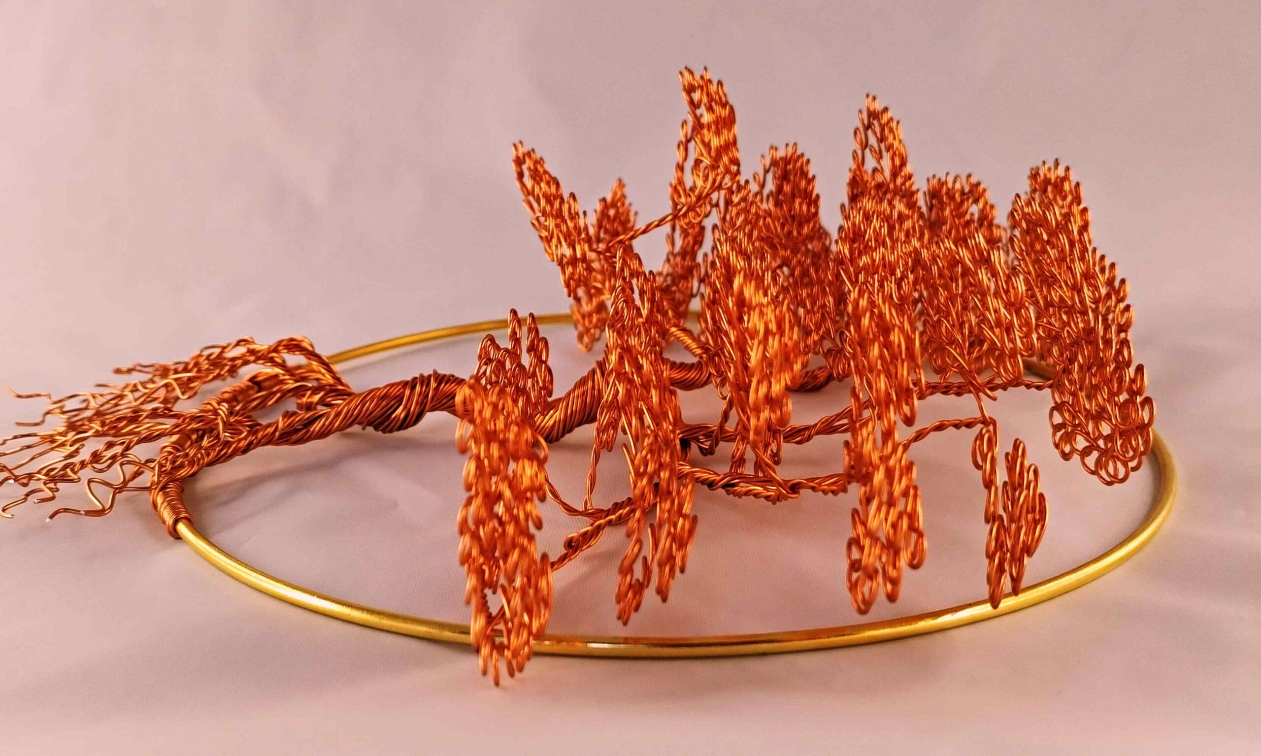Apportez chaleur et raffinement à votre intérieur avec cet Arbre de Vie en fil d’alu monté sur cercle doré, une sculpture murale artisanale au design harmonieux et intemporel.