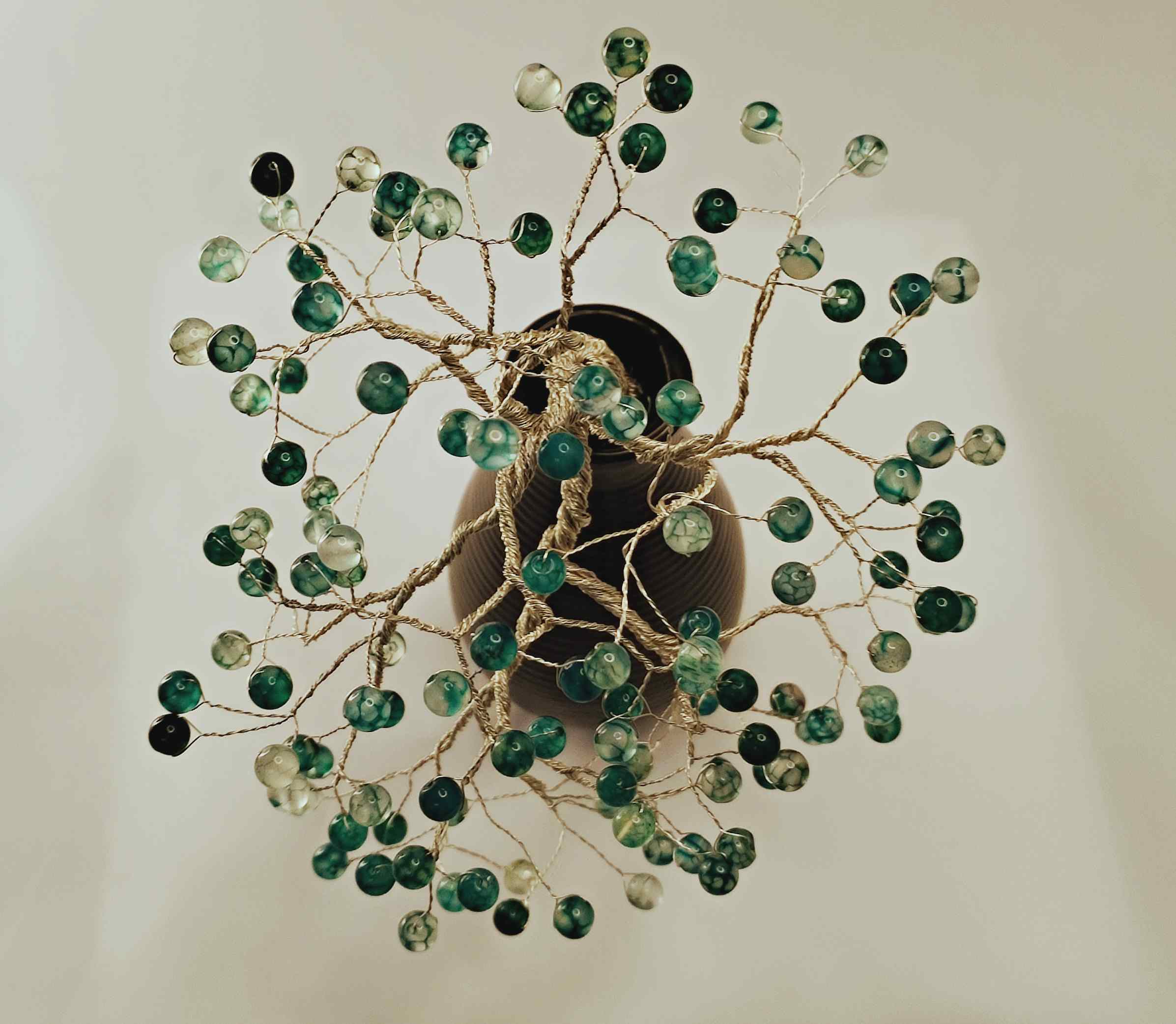 🌿 Arbre de Vie en Agates Veines de Dragon – Sculpture Artisanale en Fil Métallique
