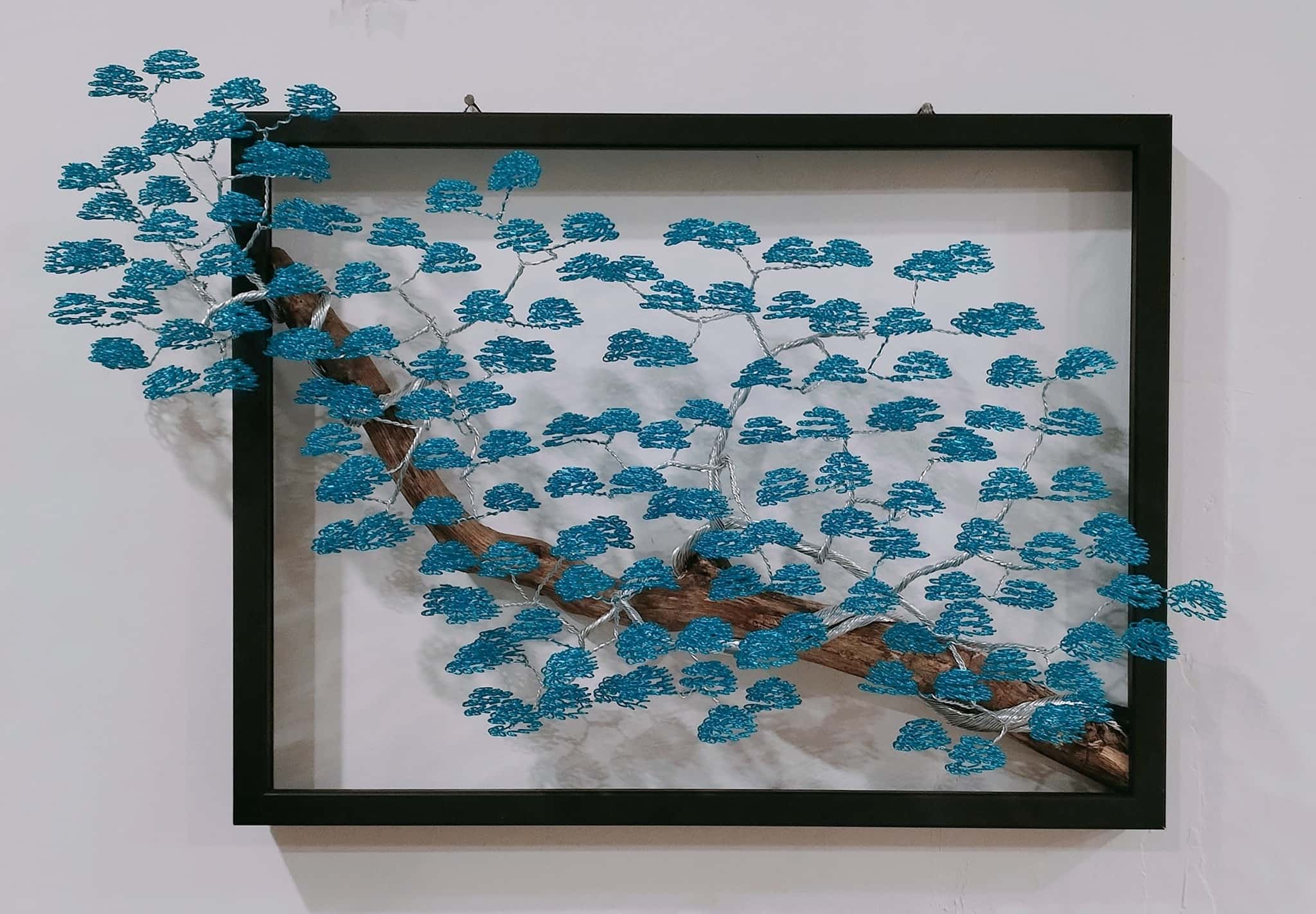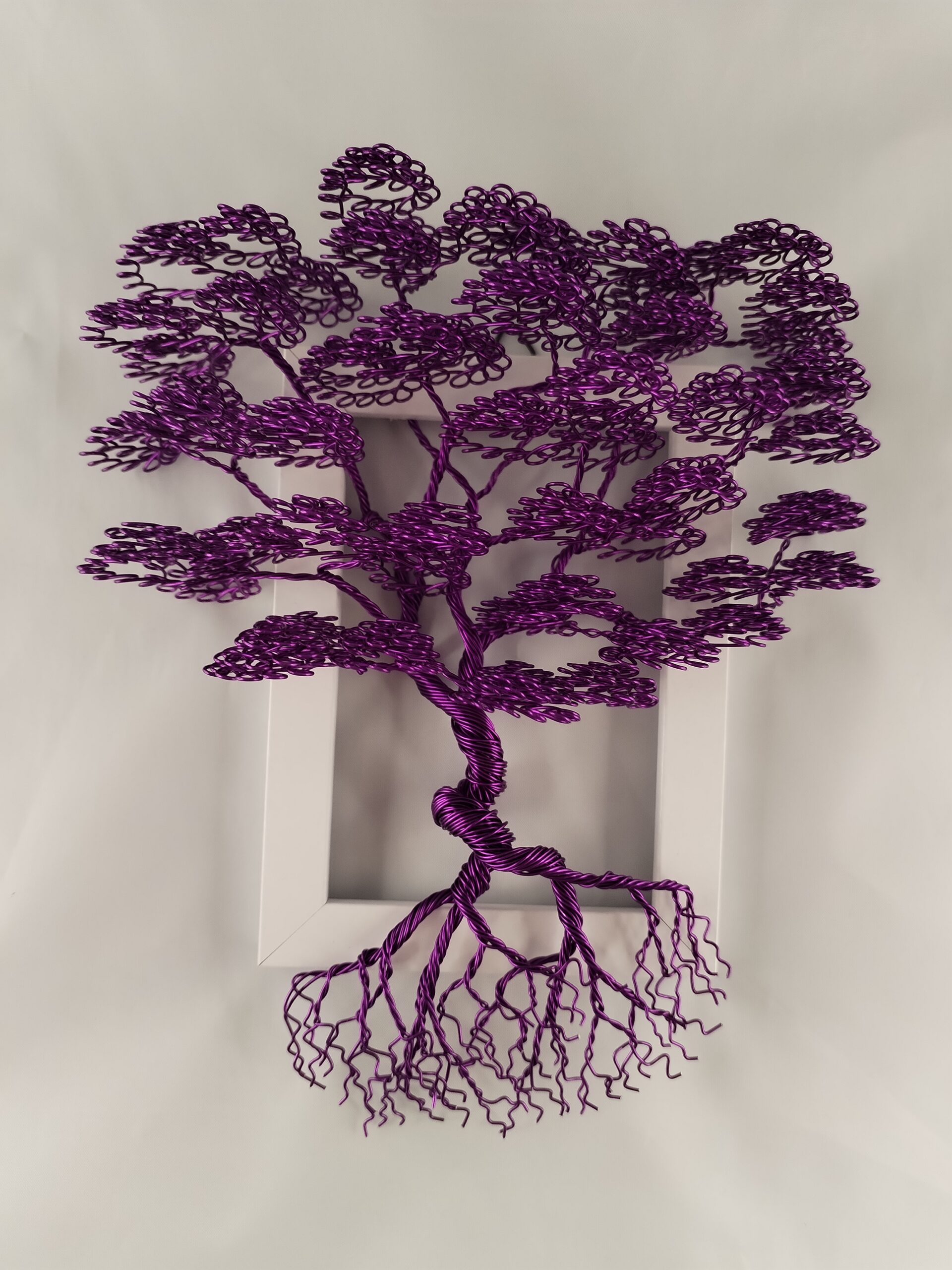 🌳 Tableau décoratif artisanal – Arbre violet en fil aluminium